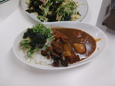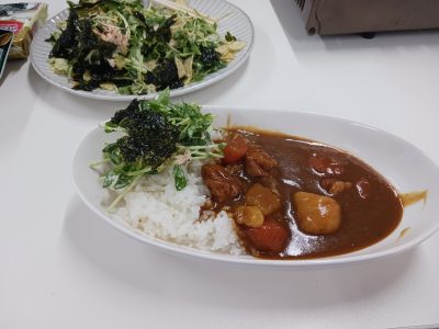本日のメニューは ポークカレーとサラダです。