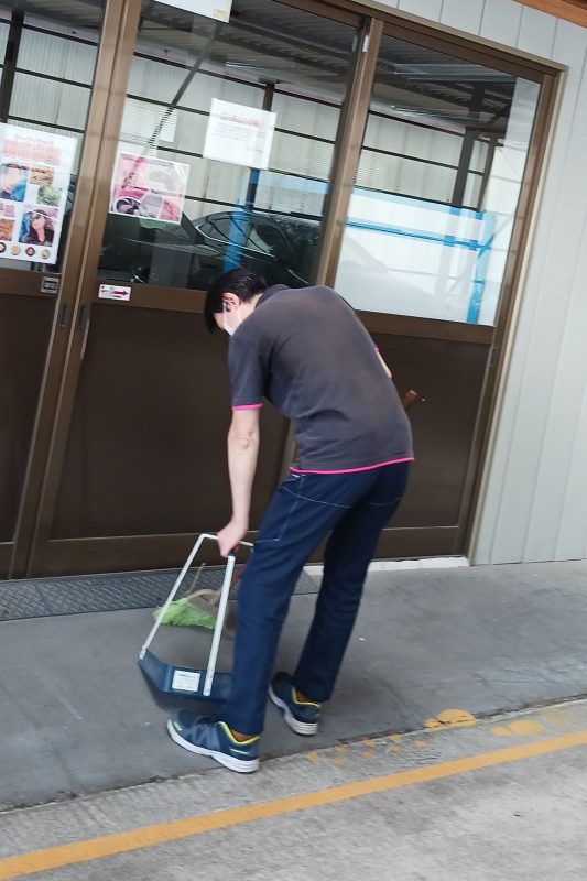 全員で朝の清掃、グループ毎に4エリアに分けたお掃除場所が毎日順番で変わります