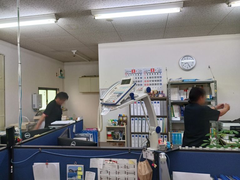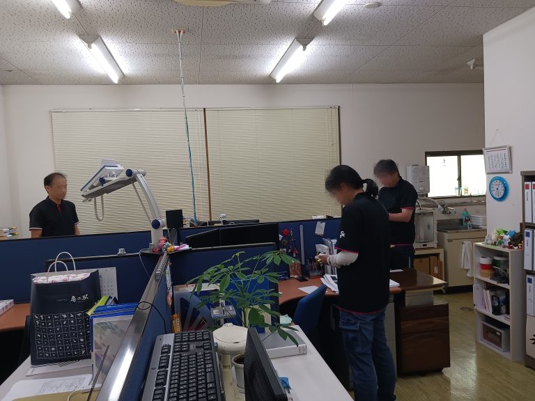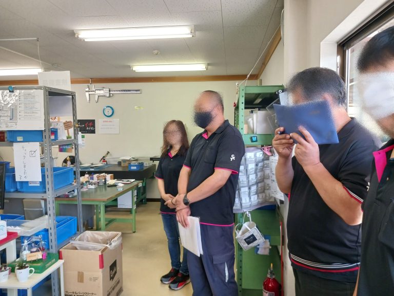 それぞれの部門に分かれ本日の予定とお休みの人など連絡事項の確認です。