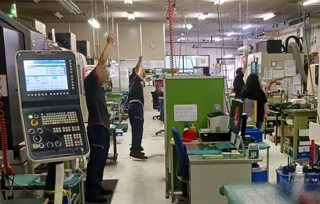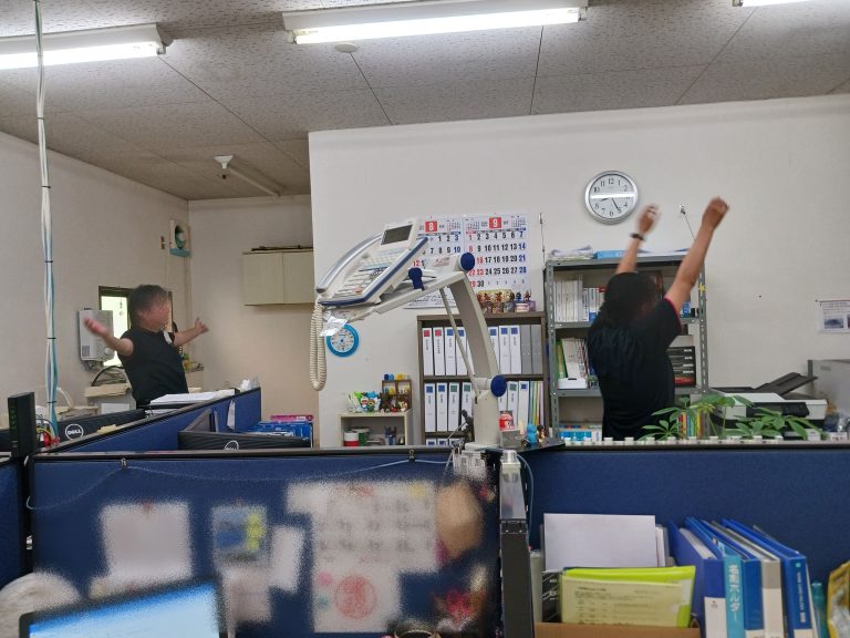健康経営活動の一環で毎朝社内放送でラジオ体操。