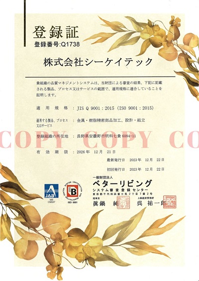 | 適用規格 | JIS Q 9001:2015 ( ISO 9001:2015 ) |