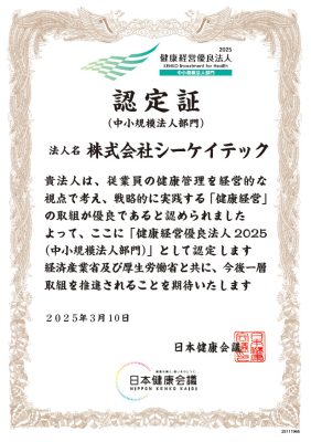 当社では今年度も健康経営に取り組み、健康経営優良法人2025(中小規模法人部門)に認定されました。